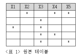 원본 테이블인 [표 1]에는 5×5 크기의 테이블에 * 모양의 지뢰가 총 10개 배치돼 있습니다.