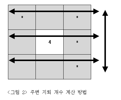 [그림2]는 앞서 구한 두 가지 방법을 하나로 접목시키는 방법을 도식화한 것입니다. 우선 가로측 화살표 방향으로 문자열을 합쳐 길이를 구합니다. 그리고 가운데 행을 기준으로 위와 아래 행도 마찬가지 방법으로 구합니다. 이렇게 구한 3개 행의 값을 세로 화살표 방향으로 합산합니다. 이를 수식으로 표현하면 다음과 같습니다.