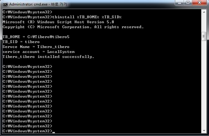 4. %TB_HOME%/scripts 디렉터리에서 system.vbs 명령어를 입력하여 data dictionary와 system 패키지 를 생성한다.