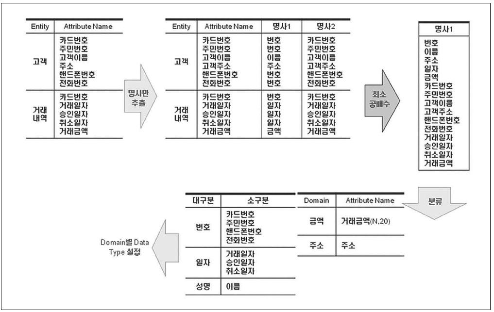 • 3. 공통으로 발생하는 명사를 하나의 도메인으로 생성 (공통으로 발생하는 명사는 하나의 도메인으로 설정해 추후 동일한 데이터 타입을 할당)