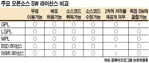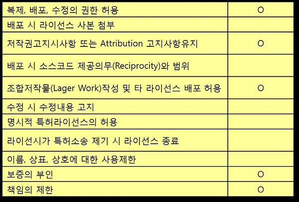 또 다른 오픈소스인 mariaDB의 경우에는 GPL v2.0 로 배포되는 라이선스로 복제, 배포, 수정에 대한 권한이 허용되나, 수정한 소스 혹은 GPL 소스코드를 활용한 소트프웨어 모두 GPL로 공개되어야 한다는 제약사항이 존재한다.