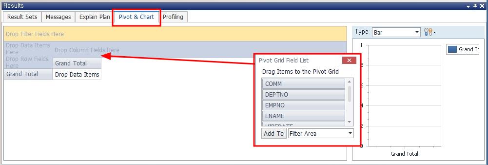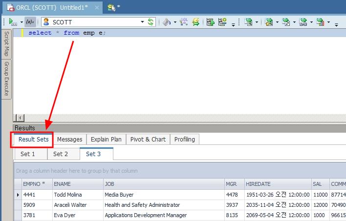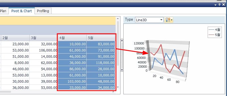 사용 방법은 먼저 Editor창에서 SQL문을 수행하고 Results 탭에서 Pivot & Chart탭을 선택합니다.
