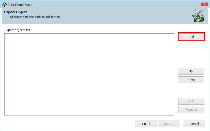 Export Job을 생성하기 위해서 Add 버튼을 누릅니다.