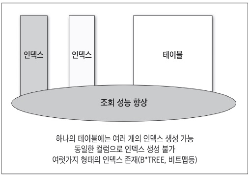 인덱스 스캔 없이 테이블 전체를 스캔(FULL SCAN)한다면 이 또한 성능 저하의 원인이 될 것이다. 만약 작은 수의 인덱스로 모든 액세스 경로(ACCESS PATH)를 수용할 수 있다면 DML 수행에 따른 인덱스 관리 시간을 단축할 수 있을 것이다.