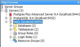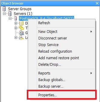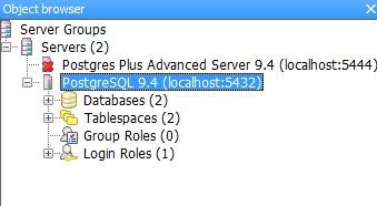Object browser는 서버그룹을 보여주는 창으로서 Server, Databases, Tablespaces, Group Roles, Login Roles등을 보여준다.