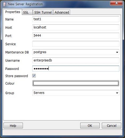 2) 서버의 이름과 호스트, 포트번호, 서비스, 비밀번호 등을 입력하여 새로운 서버를 생성합니다.