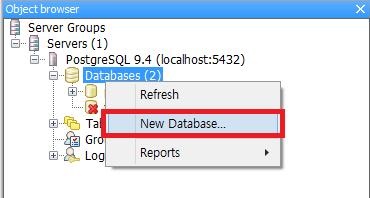 Database를 오른쪽 마우스로 클릭하면 새로운 Database를 생성할 수 있습니다.