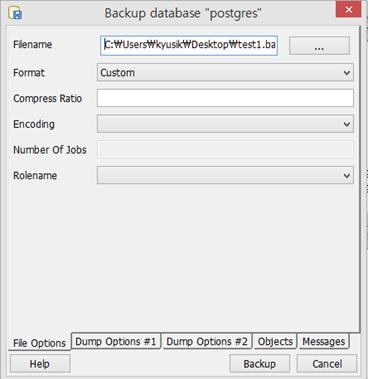 Backup과 Restore는 Database를 다른 경로에 저장해 두어 필요할 시 다시 꺼내올 수 있는 기능을 한다. File option에서 Filename을 설정하고 압축의 형태와 크기, Encoding방법등 선택한 개체에 따라 단일테이블, 스키마 또는 전체 데이터베이스를 백업 또는 저장할 수 있다.