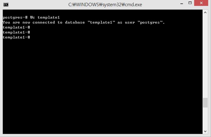 서버에 접속되어 있는 다른 Database에 접속하려면 \c DBNAME을 입력하면 다른 Database에 접속할 수 있다. Ex) \c template1