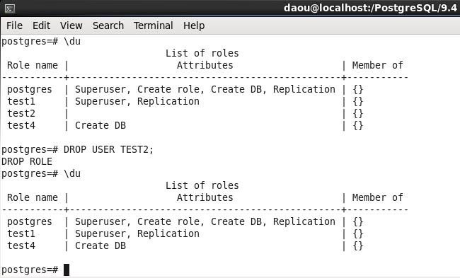 DROP USER TEST2;