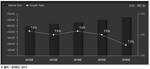 그림 1-2와 같이 국내 DBMS 시장은 연평균 7% 성장률을 보이고 있지만 오랜 기간 동안 외산 DBMS 3사가 시장의 90%를 점유하며 대부분의 이익을 취하고 있음은 매우 안타까운 일이다.