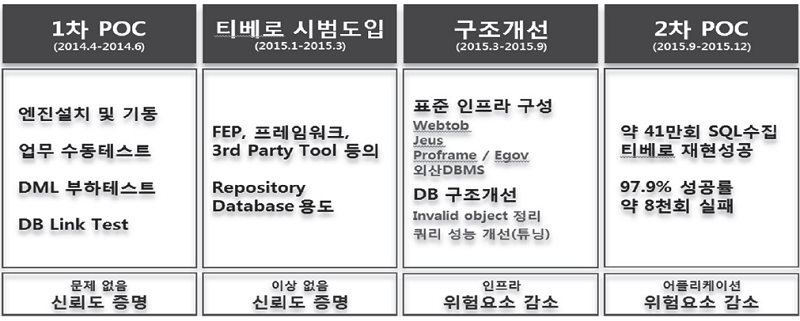 그리고 무엇보다 타 벤더의 DBMS 부하를 재현할 방법은 도저히 없을 것이고 DBMS 제품의 신뢰도만으로도 전환이 충분히 가능할 것이라는 티맥스의 생각을 변화시켜 고객사의 어플리케이션 안정화를 고려한 전환방법론이 반드시 필요하다는 것을 인지하도록 한 것이 가장 큰 의의라고 할 수 있다.