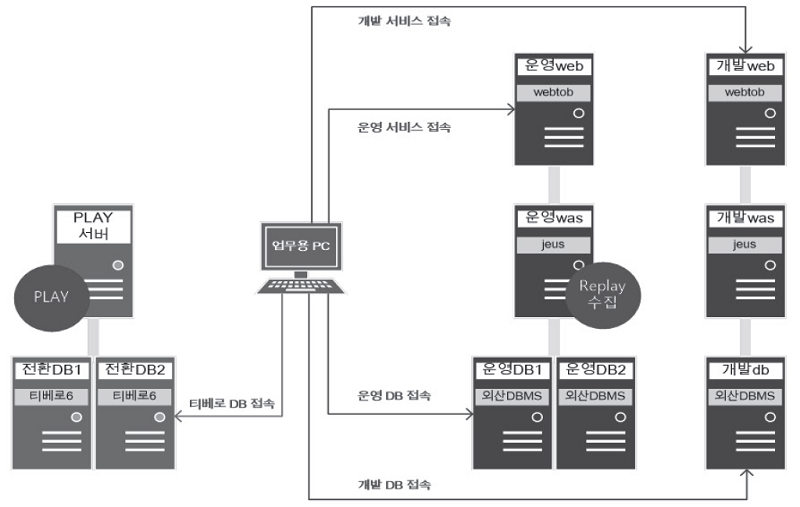 참고 1) 소속 회사는 2단계 [비호환 SQL 분석 및 개선 단계] 완료시점 까지는 업무 담당자 테스트 없이 리플레이를 통한 자동화 테스트만 진행하기로 정의 하였으므로 티베로 DBMS 설치 서버, 리플레이 PLAY 수행 서버 외에 별도의 서버는 불필요했다.
