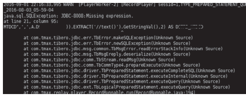 그리고 본 요건을 만족하기 위해서는 외산 DBMS에 대한 티베로의 호환성이 최소한 99% 이상이어야 엔진 혹은, SQL을 수정하며 프로젝트 기간 안에 100% 호환성을 달성할 수 있을 것이다. 따라서 외산 DBMS에서 수집한 SQL을 리플레이를 통해 티베로에 최초 수행했을 때 실패율이 과연 몇 %일 것이냐에 많은 걱정과 기대를 했었는데 다행히도 상당히 양호한 0.3%의 실패율(99.7%의호환율)을 기록하는 것으로 분석되었다(2015년 2차 POC를 통해 밝혀낸 6개의 실패 패턴(당시 실패율 2.1%)이 모두 처리된 이후 프로젝트가 시작되었기 때문에 더욱 양호한 호환성을 보인 것으로 생각된다).