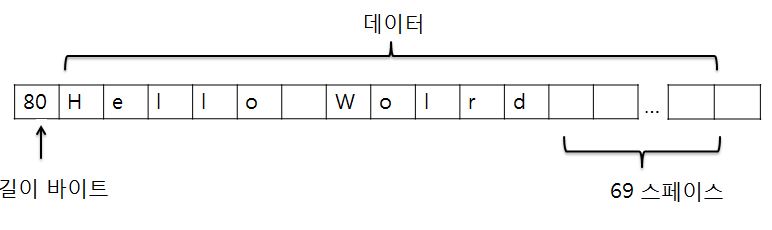 • 문자열 길이가 250바이트 초과한다면, 2바이트의 0xFE(254) 플래그를 사용하여 표현
